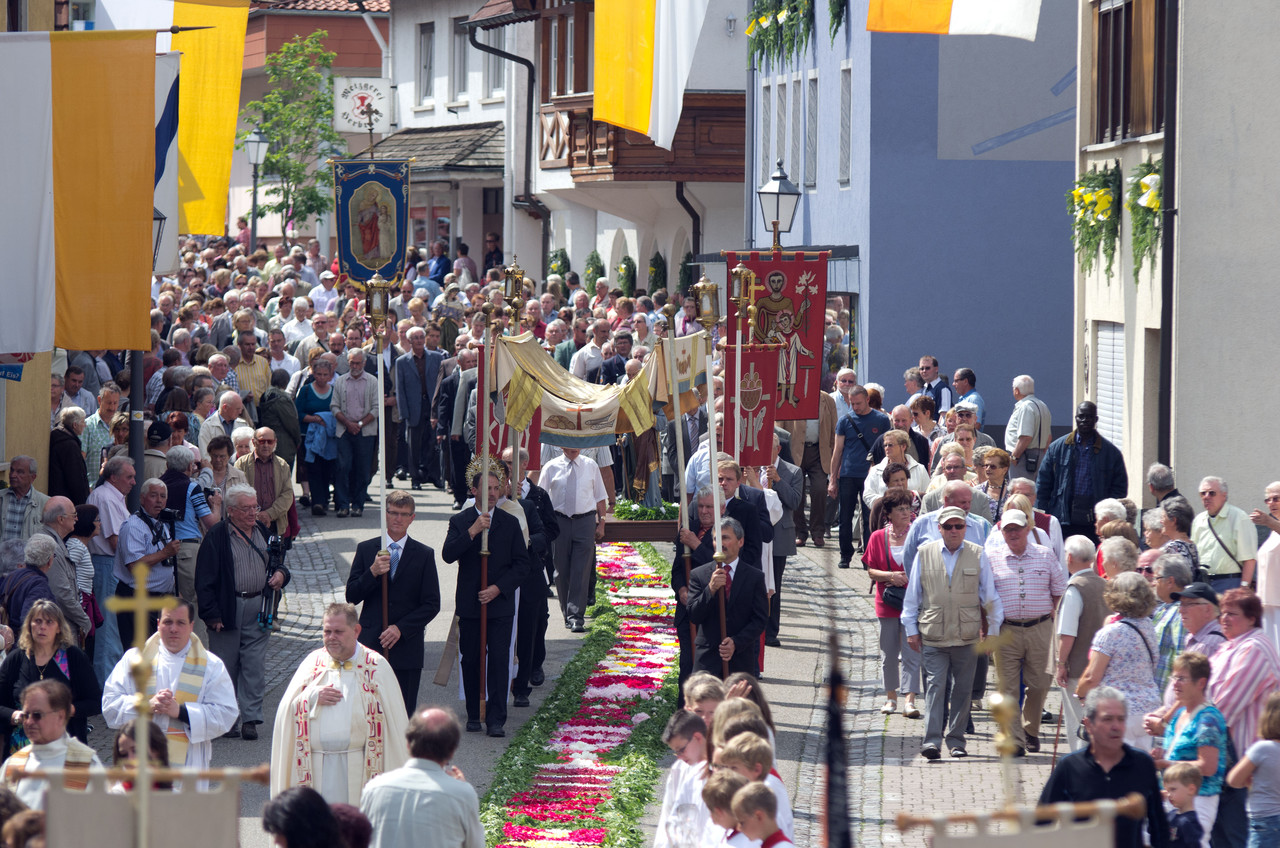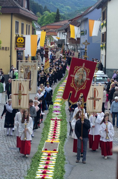 Am Festtag selbst bewegt sich über ihn unter Böllerschüssen, begleitet von Trachtenträgern, den Abordnungen der Vereine und unter den Gesängen von Chor und den Klängen der Trachtenkapelle die heilige Prozession.